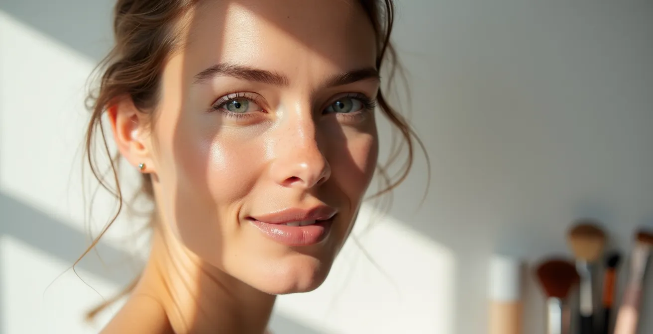 Highlighter auf texturierter Haut ist wie ein Scheinwerfer auf einer unebenen Wand – er verstärkt jede Unebenheit. Die Lösung ist strategische Platzierung, nicht mehr Produkt.