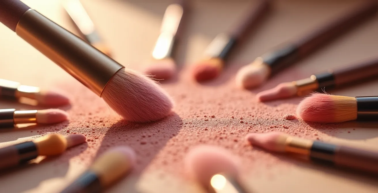 Die gängigen Ratschläge wie „gut verblenden“ oder „einen weichen Pinsel benutzen“ sind zwar richtig, kratzen aber nur an der Oberfläche. Sie erklären nicht das „Warum“. Für ein Ergebnis, das selbst unter dem gnadenlosen Auge einer HD-Kamera besteht, müssen wir tiefer gehen. Es geht nicht um Magie, sondern um Physik: um Druckkontrolle, die Synergie verschiedener Texturen und die bewusste Architektur von Licht und Schatten. Es geht darum, die Prinzipien zu verstehen, die professionelle Make-up-Artisten anwenden, um ein Finish zu kreieren, das wie von innen heraus leuchtet.
